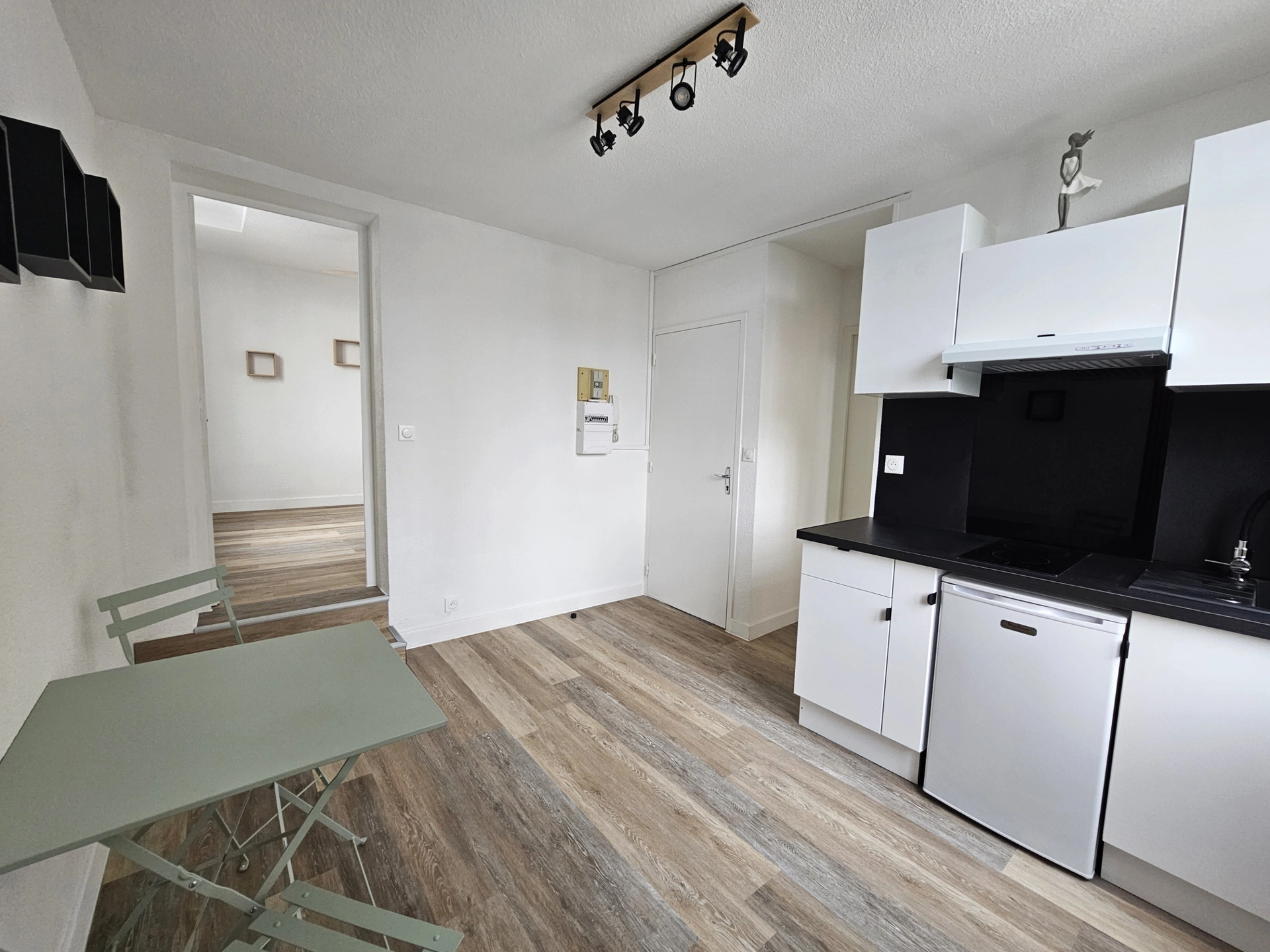 - une pièce de vie avec kitchenette aménagée et équipée à neuf - une VRAIE chambre,