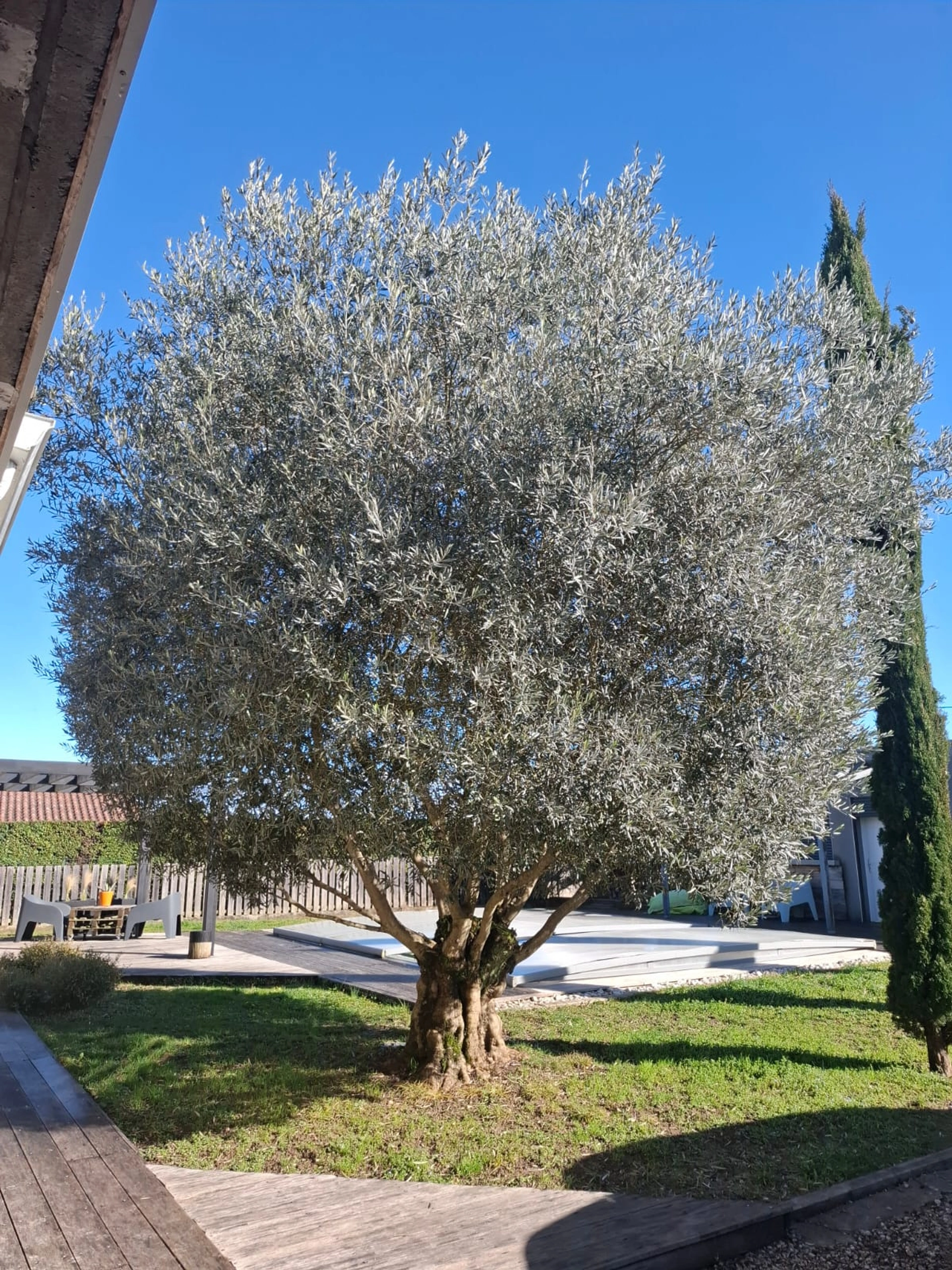 Le jardin, soigneusement aménagé, bénéficie de végétaux de grande qualité : ifs, érables, et olivier de plus de 100 ans.