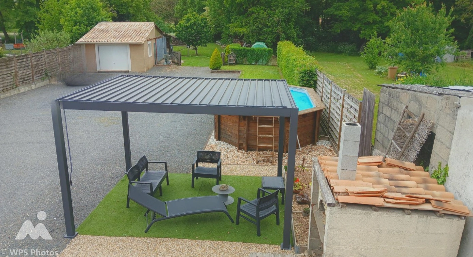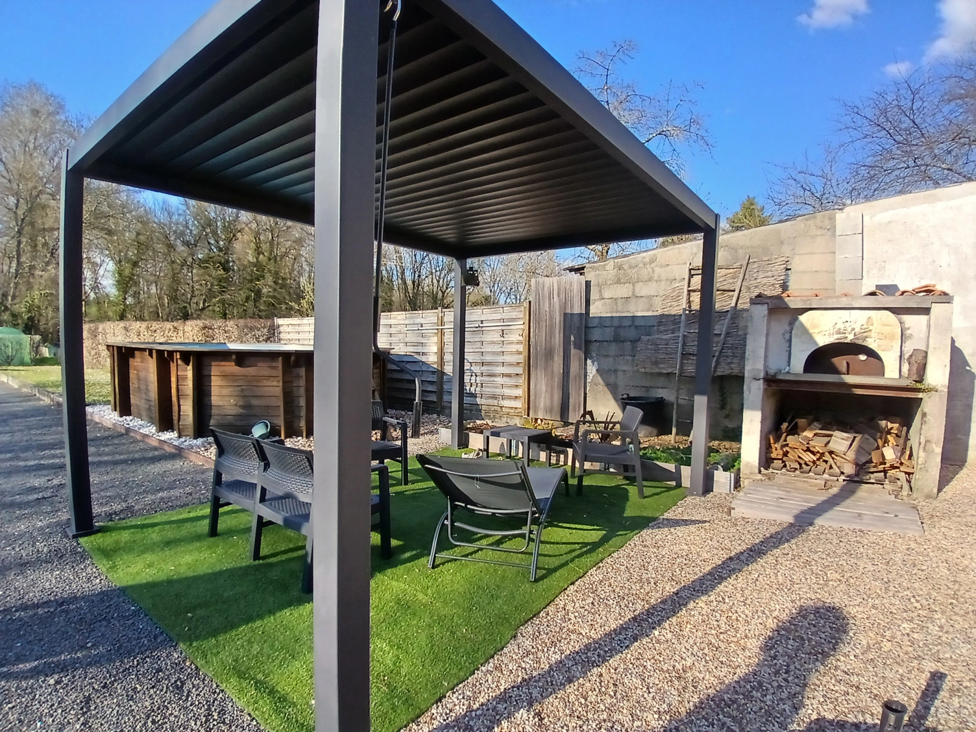 À l'extérieur, une superbe terrasse en bois surplombe le terrain, offrant une vue dégagée et un espace parfait pour vos repas en plein air ou vos moments de détente.