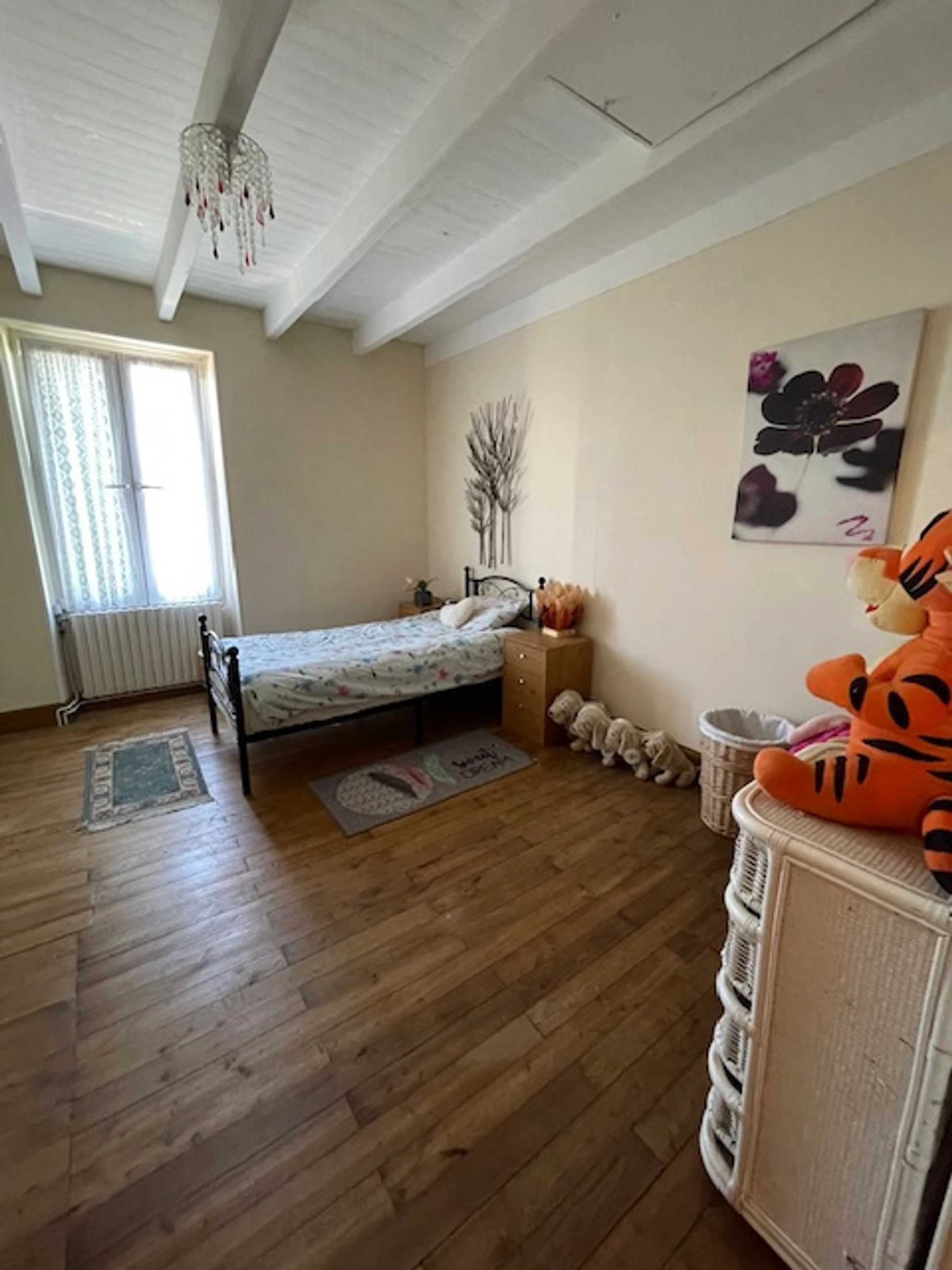 Located in the heart of a peaceful French village, this attractive character property offers generous accommodation, original features, and excellent potential, making it ideal as a family home, countryside retreat, or charming second residence. The house features a welcoming dining room, a comfortable living room, and a sociable kitchen, creating a warm and practical layout for everyday living and entertaining. Upstairs, three spacious bedrooms provide flexible accommodation for family and guests. Original wooden floors and period details add to the home's authentic charm and timeless appeal. Outside, the property benefits from a large garden, perfect for relaxing, outdoor dining, or enjoying the French lifestyle. An independent barn offers further possibilities, whether for storage, workshop space, or future development (subject to the necessary permissions). Set within a quiet village with a local bar-brasserie, and with shops and amenities nearby, the property enjoys a peaceful setting while remaining conveniently connected to daily necessities. A rare opportunity to acquire a character home with outdoor space and additional outbuildings, offering both charm and potential.