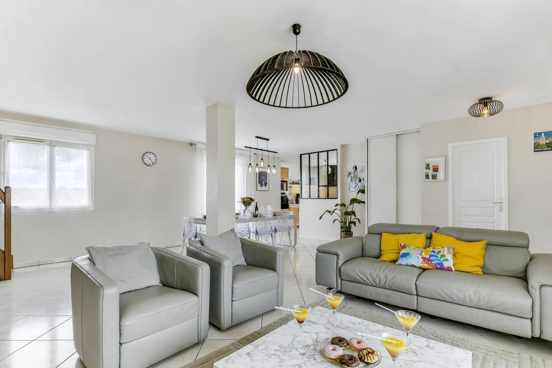 Pièce de vie lumineuse de 60 m2 avec cuisine ouverte