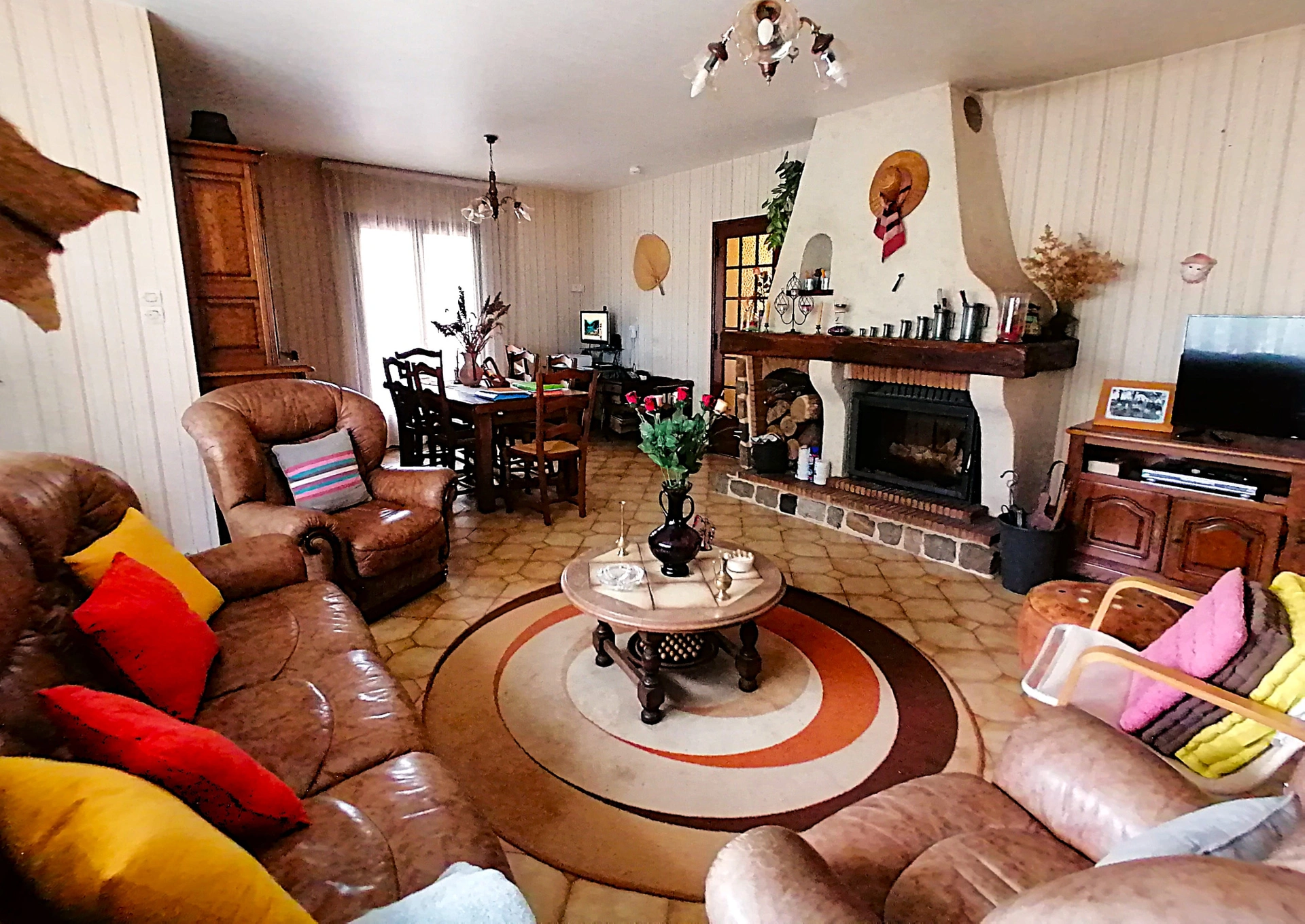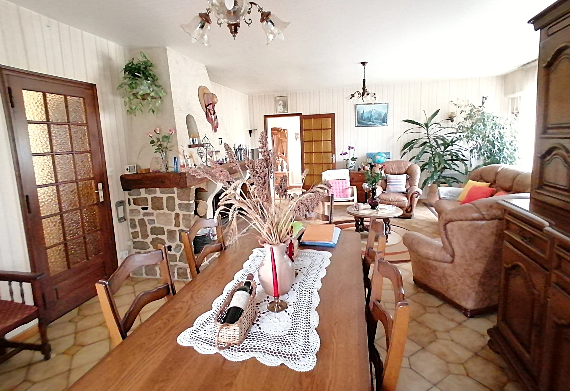 A l'exterieur, grand terrain clos et arboré avec un grand garage double porte avec mezzanine de 55m2, une cuve de récupération d'eaux pluviales enterrée de 60 000 litres, une serre de 30m2 et un poullalier.