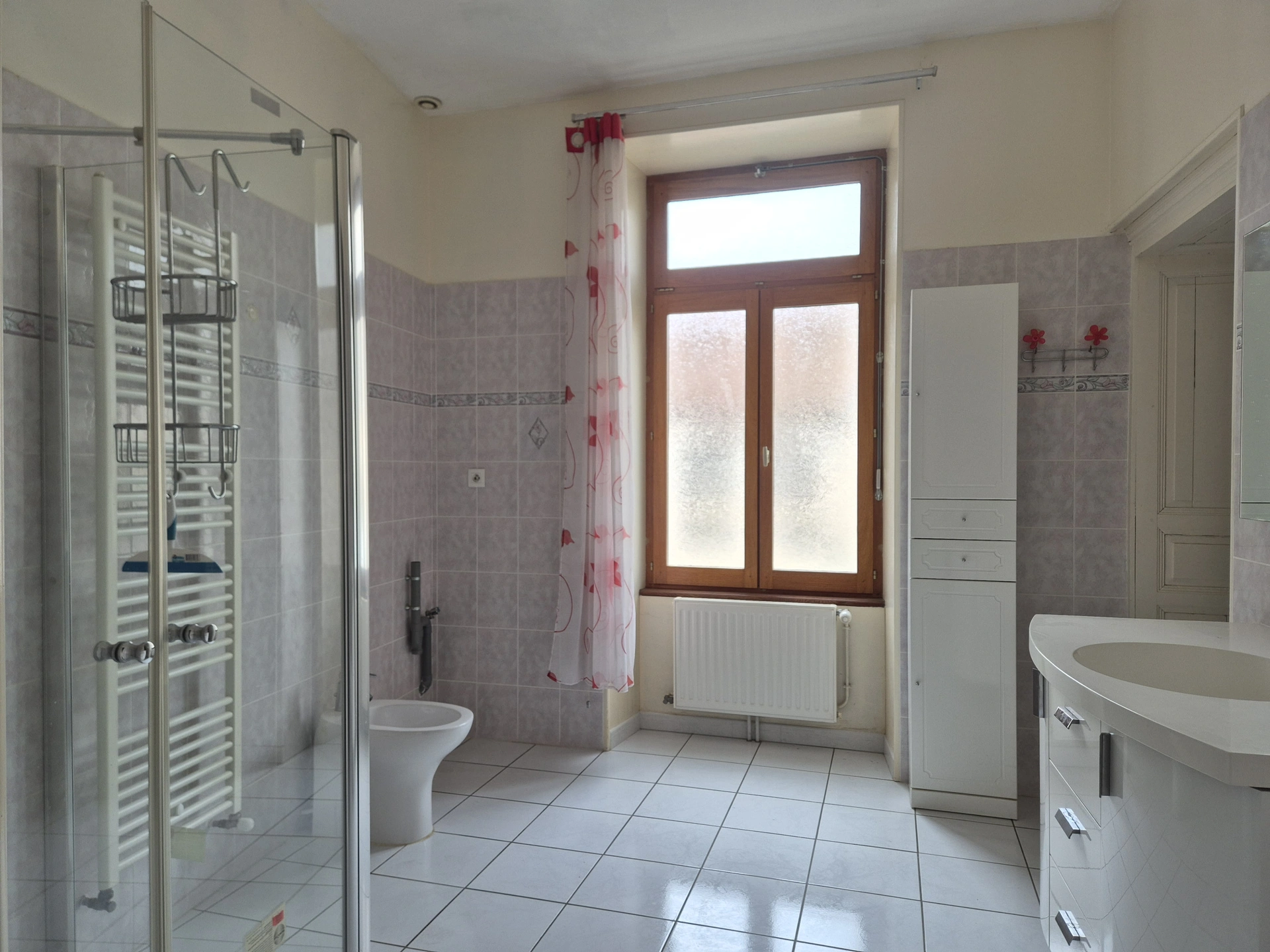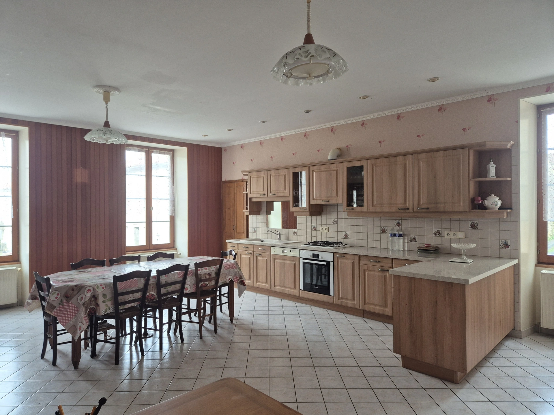 Un superbe escalier en bois d'origine conduit à l'étage, où se dévoile un vaste palier lumineux, ainsi que plusieurs chambres, un bureau et une salle d'eau avec toilettes. Une seconde cuisine est également présente à ce niveau, témoignant du fait que la propriété abritait autrefois deux logements indépendants, l'un au rez-de-chaussée et l'autre à l'étage.